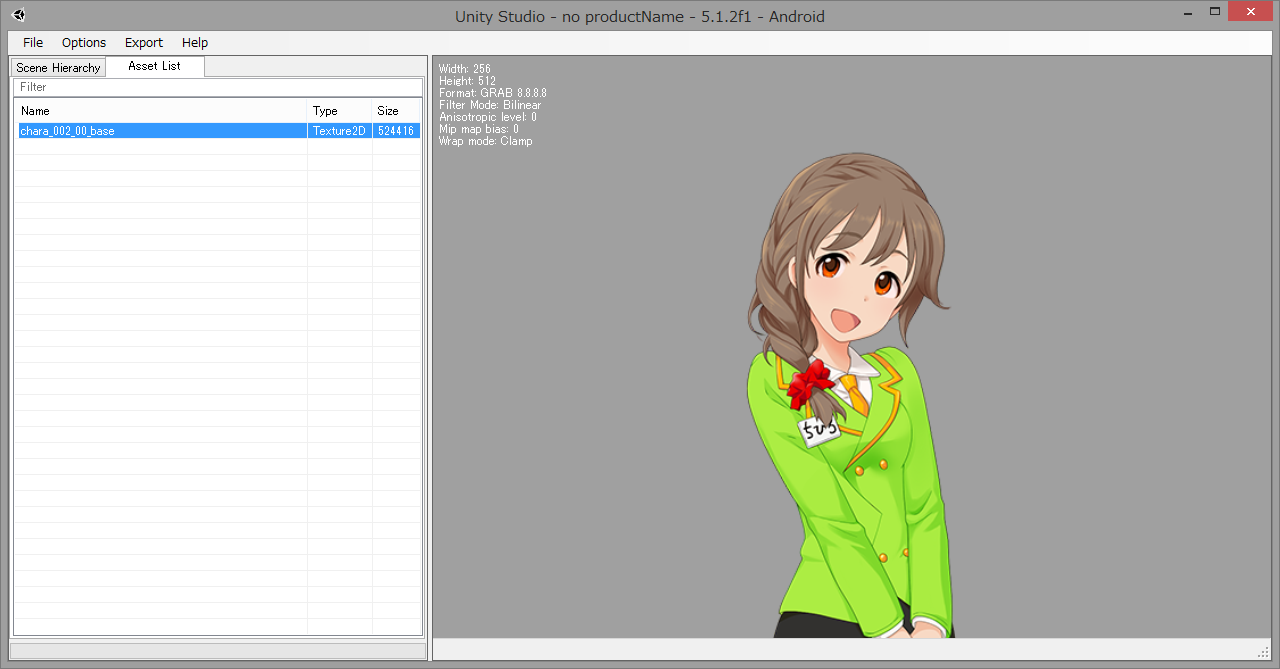 Unity Studioでは対応していない形式のためPreviewが作成されないが同じように出力できる。