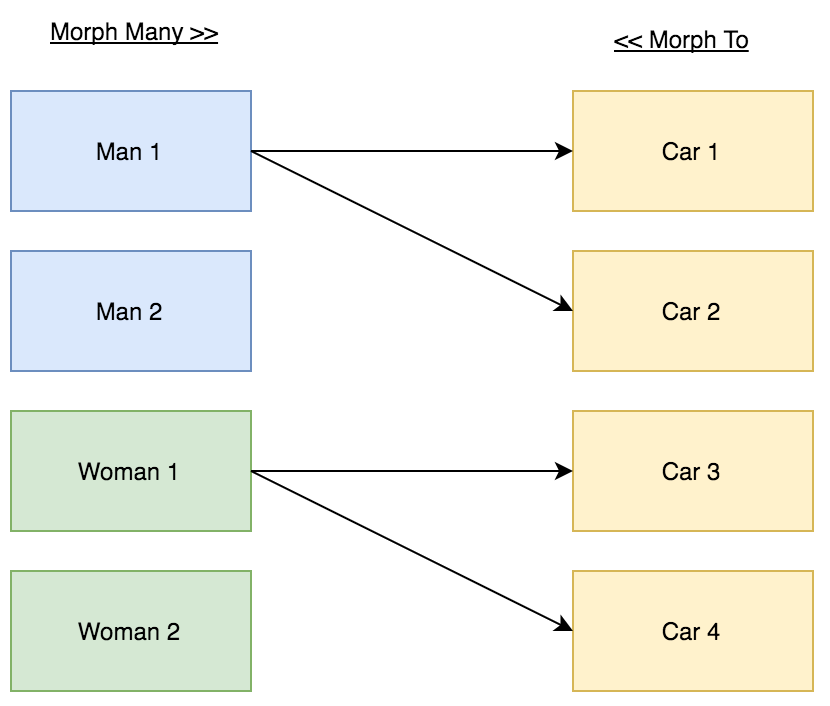 $car->driversIn this demo we have 3 models (Man, Woman and Car), and 3 tables (men, women and cars).