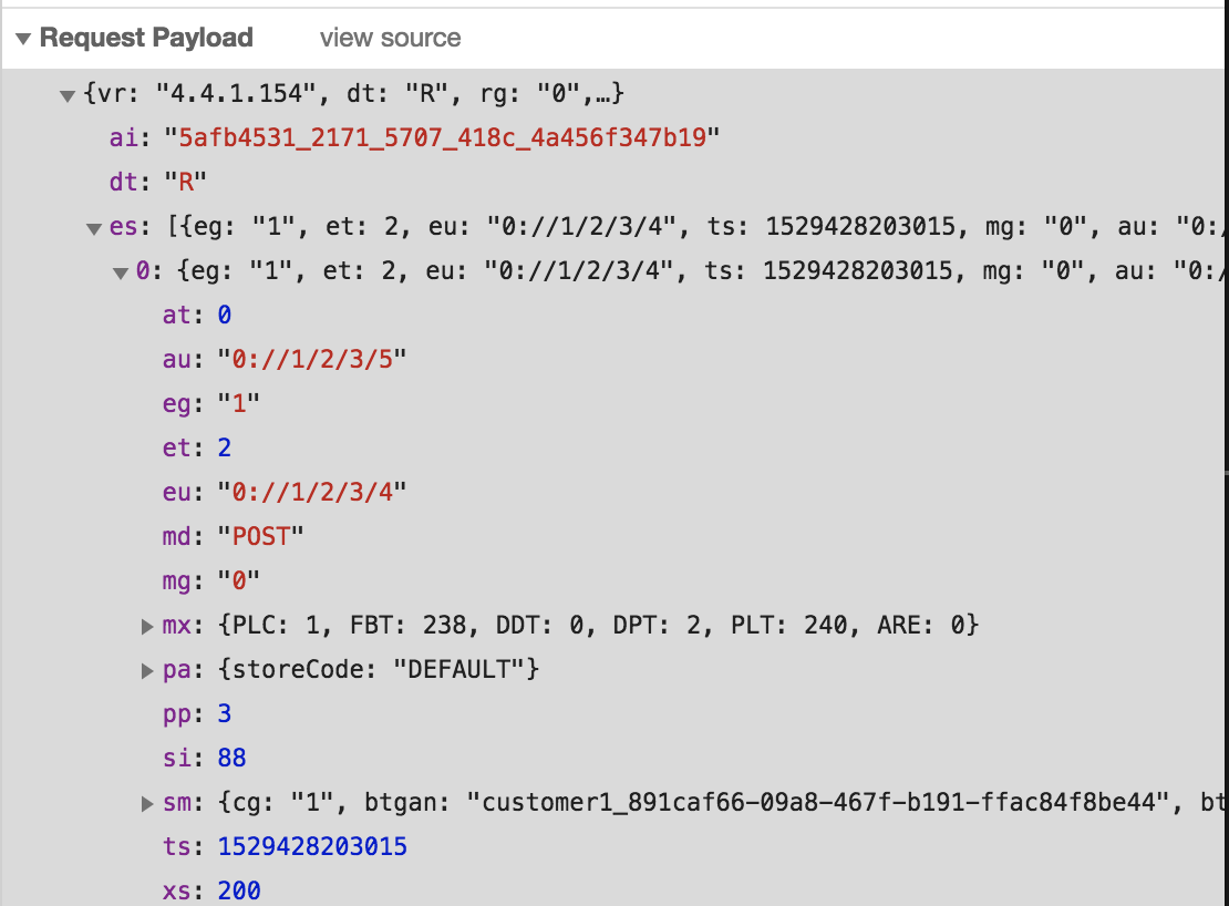 - Now add a product to the card, and check that the data is sent to AppDynamics on the POST to /adrum, you should see an element