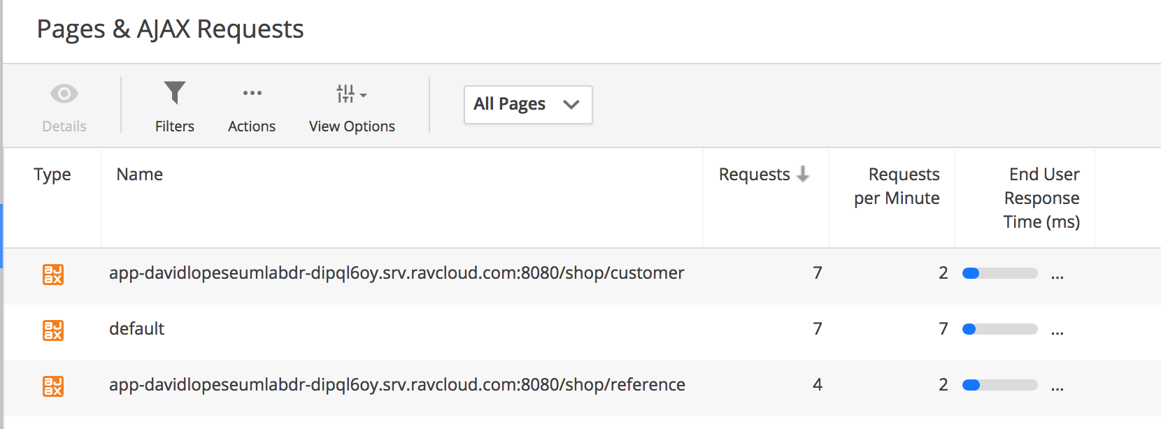 - Check that the new Page Name was created in AppDynamics with the storeCode by navigating to "Pages & AJAX Requests"