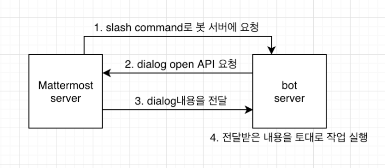 ๊ทธ์ ๊ธฐ๋ฅ๋ค๊ณผ ์ ์ฌํ text, select, textarea ์ด๋ ๊ฒ ์ธ๊ฐ์ง๊ฐ ํ์ฌ ๊ตฌํ ๊ฐ๋ฅํ๋ค. text๋ ์งง์ ๋ฌธ์์ด์, select๋ ๋๋กญ๋ค์ด ๋ฉ๋ด๋ฅผ ํตํด ๋ฆฌ์คํธ์์ ํ๊ฐ์ง ์์๋ฅผ, textarea๋ ์ฅ๋ฌธ์ ๋ฌธ์์ด์ ๋ฐ์๋ ์ฌ์ฉํ ์ ์๋ค. ํด๋น ์์ ๋ Mattermost server๋ก dialog๋ฅผ ์ด๋๋ก ์์ฒญํ๊ณ ์ฌ์ฉ์๊ฐ ์์ฑํ ๊ฐ๋ค์ ์๋ฒ ๋ก๊ทธ๋ก printํ๋ ๋จ์ํ ์์ ์ด๋ค. ์๋ฒ๋ Node.js ๋ฅผ ํตํด ๊ตฌ๋ํ๋ค.