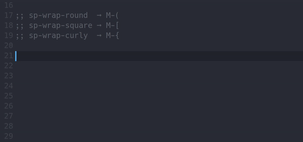 An animated cheatsheet for smartparens using the example configuration specified here by the smartparens author. Inspired by this tutorial for paredit.
