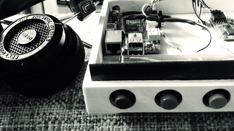 ####Raspberry Pi At the heart of the player is a Raspberry Pi running Debian Wheezy. Getting Linux to play audio is very easy, so getting to audio books to play wasn't that much of a challenge. For playing audio, I used mpd, which is a daemon that runs a server that plays audio and that is controlled by sending it commands over TCP, a very reliable and easy to use network protocol.
